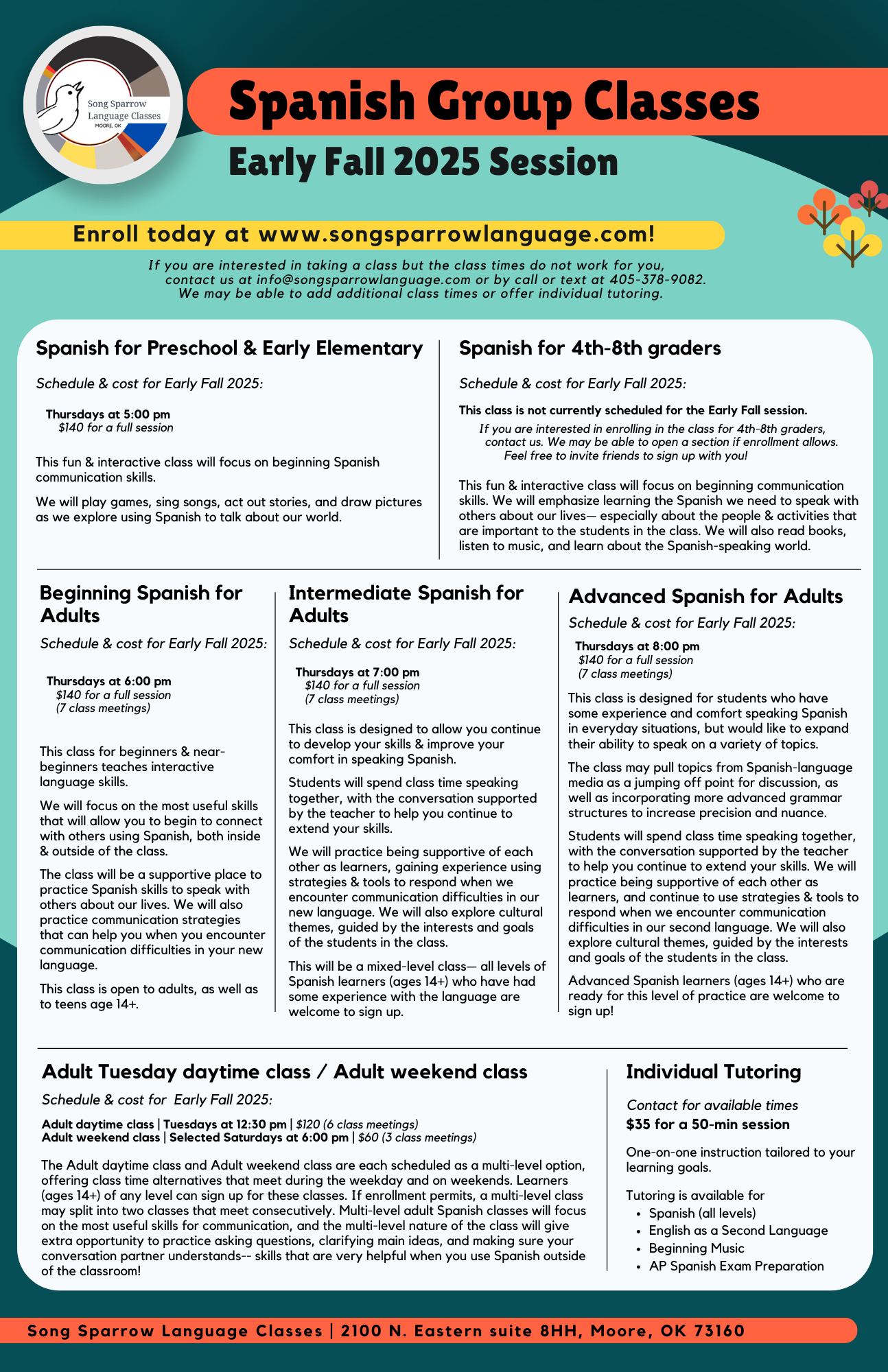 Each class provides targeted, age-appropriate ways to absorb your new language, with a focus on using what you know to communicate.